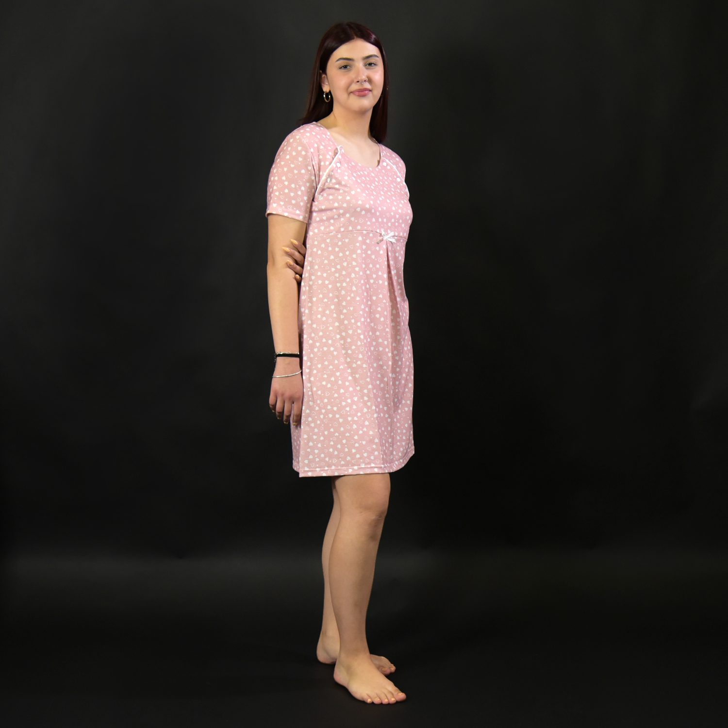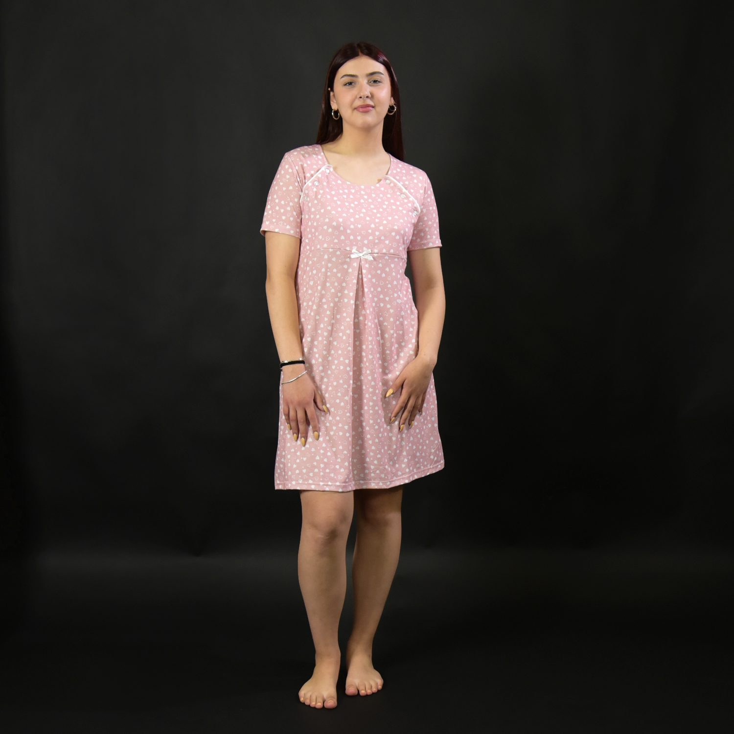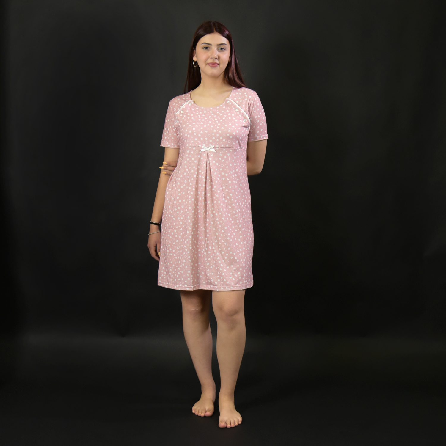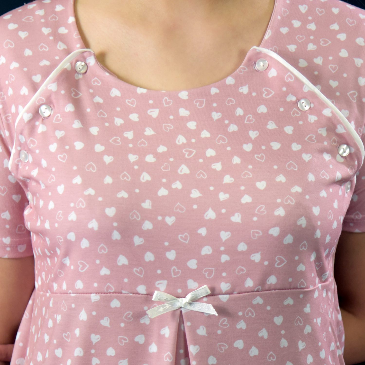 Νυχτικό εγκυμοσύνης βαμβακερό Ελληνικής ραφής σε απαλό ροζ χρώμα. Τα κουμπιά ανοίγουν και από τις δυο πλευρές κάτι που το κάνει ιδανικό για νέες μανούλες.