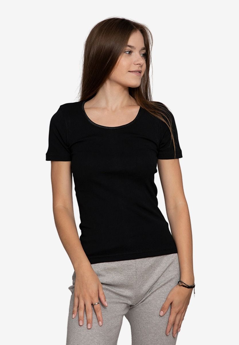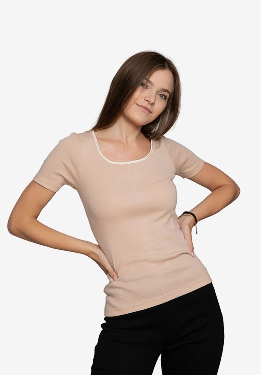 Φανελάκι γυναικείο κοντομάνικο από την εταιρεία Nina Club. Με κομψή σατέν λεπτομέρεια στη λαιμόκοψη. Ανάλαφρο και απαλό από εξαιρετικής ποιότητας βαμβάκι.