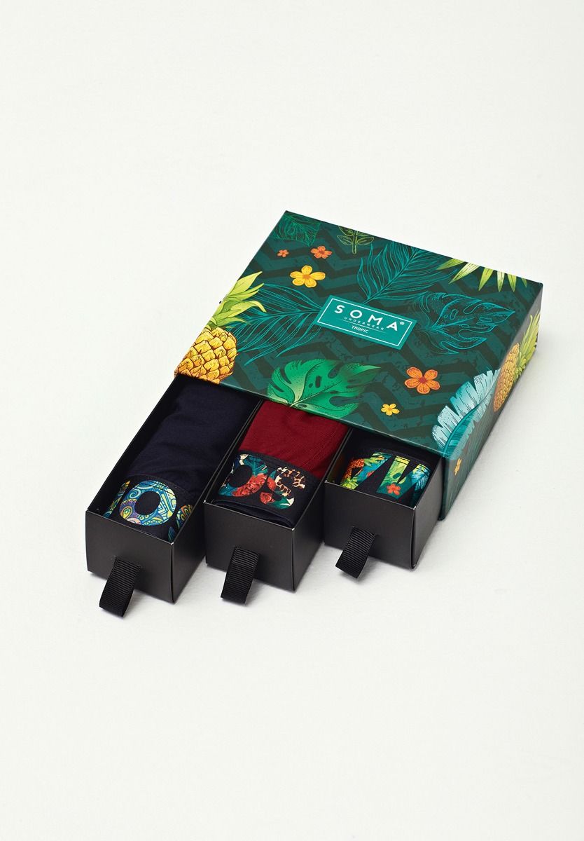 BOXER ΑΝΔΡΙΚΑ ΣΕ ΚΟΥΤΙ TROPIC.Μποξεράκια ανδρικά με σχέδια στο λάστιχο, σε κουτί πολυτελείας από την εταιρεία Soma. Σετ τριών τεμαχίων σε διαφορεικά χρώματα και σχέδια στο λάστιχο. Βαμβακερά και άνετα. Ιδανικά για δώρο!