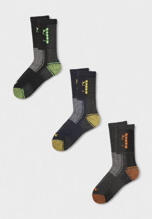 Οι ανδρικές κάλτσες εργασίας Diadora Work Socks προσφέρουν άνεση, αντοχή και προστασία καθ’ όλη τη διάρκεια της ημέρας. Κατασκευασμένες από υψηλής ποιότητας βαμβάκι (55%), ενισχυμένες με πολυεστέρα (39%), πολυαμίδη (3%) και βισκόζη (3%), προσφέρουν ιδανική εφαρμογή, απορρόφηση υγρασίας και ανθεκτικότητα στη φθορά.