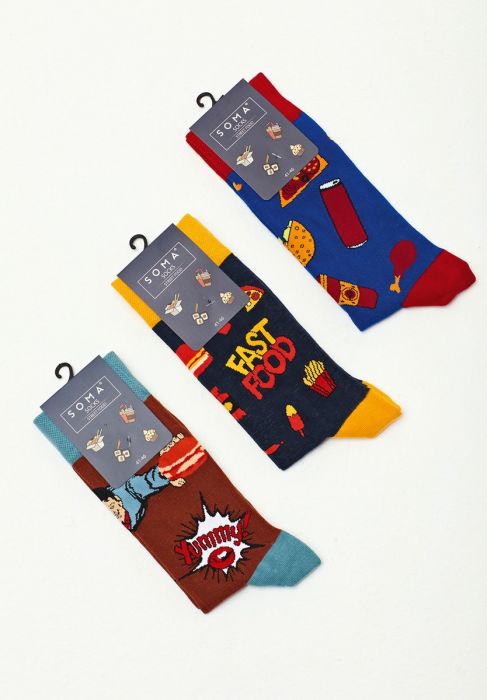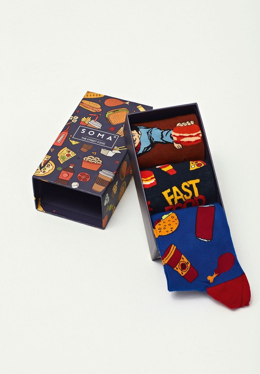 Κάλτσες ανδρικές με σχέδια σε κουτί πολυτελείας από την εταιρεία Soma. Σετ τριών τεμαχίων με διαφορετικά σχέδια. Βαμβακερές και άνετες. Ιδανικές για δώρο!