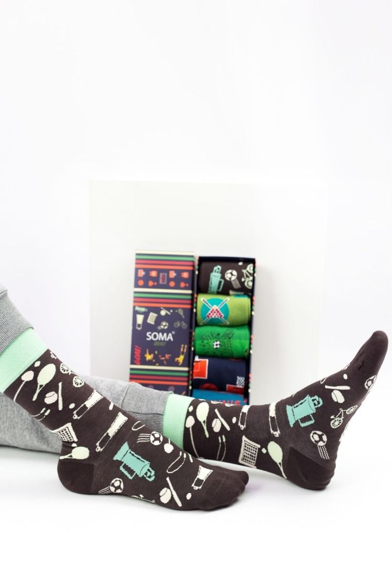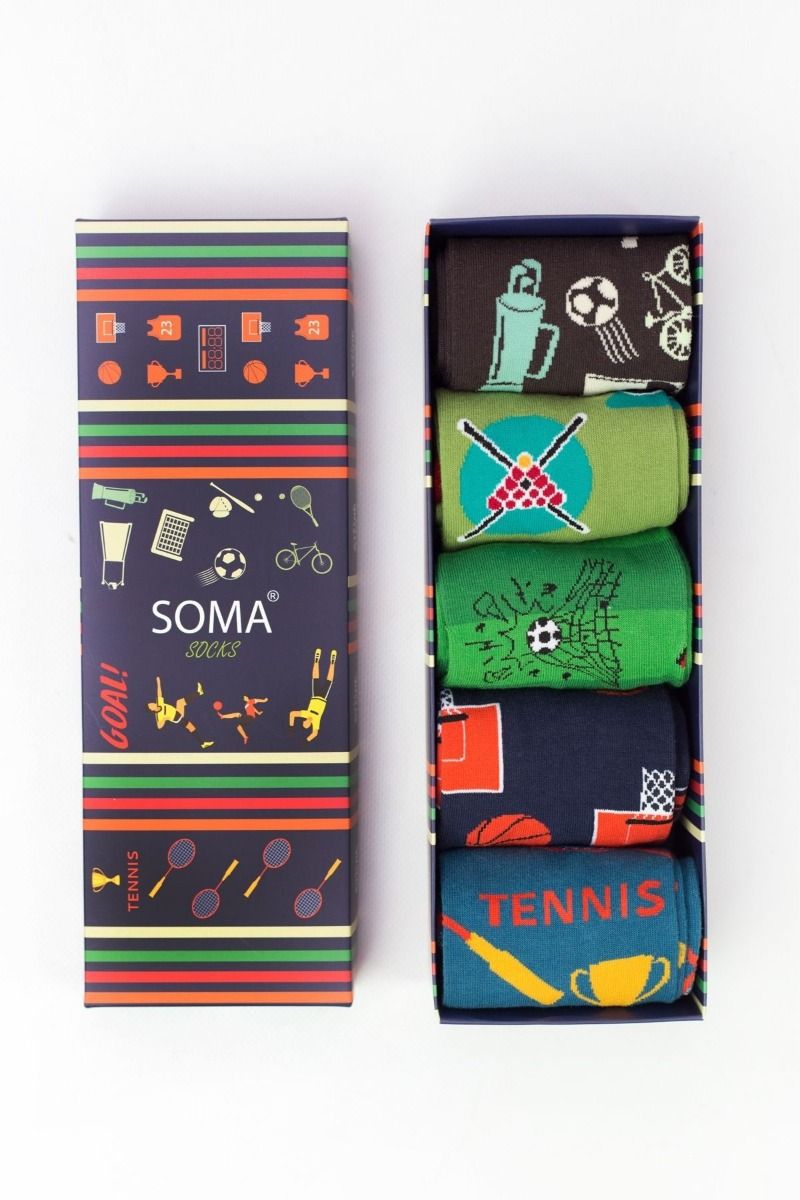 Κάλτσες unisex από την εταιρεία Soma Socks. Πακέτο 5 τεμαχίων σε σκληρό κουτάκι δώρου με διάφορα σχέδια. Η ιδανική επιλογή για καθημερινή χρήση καθώς προσφέρουν άνεση αλλά και μοναδικό στύλ για όλες τις εμφανίσεις !
