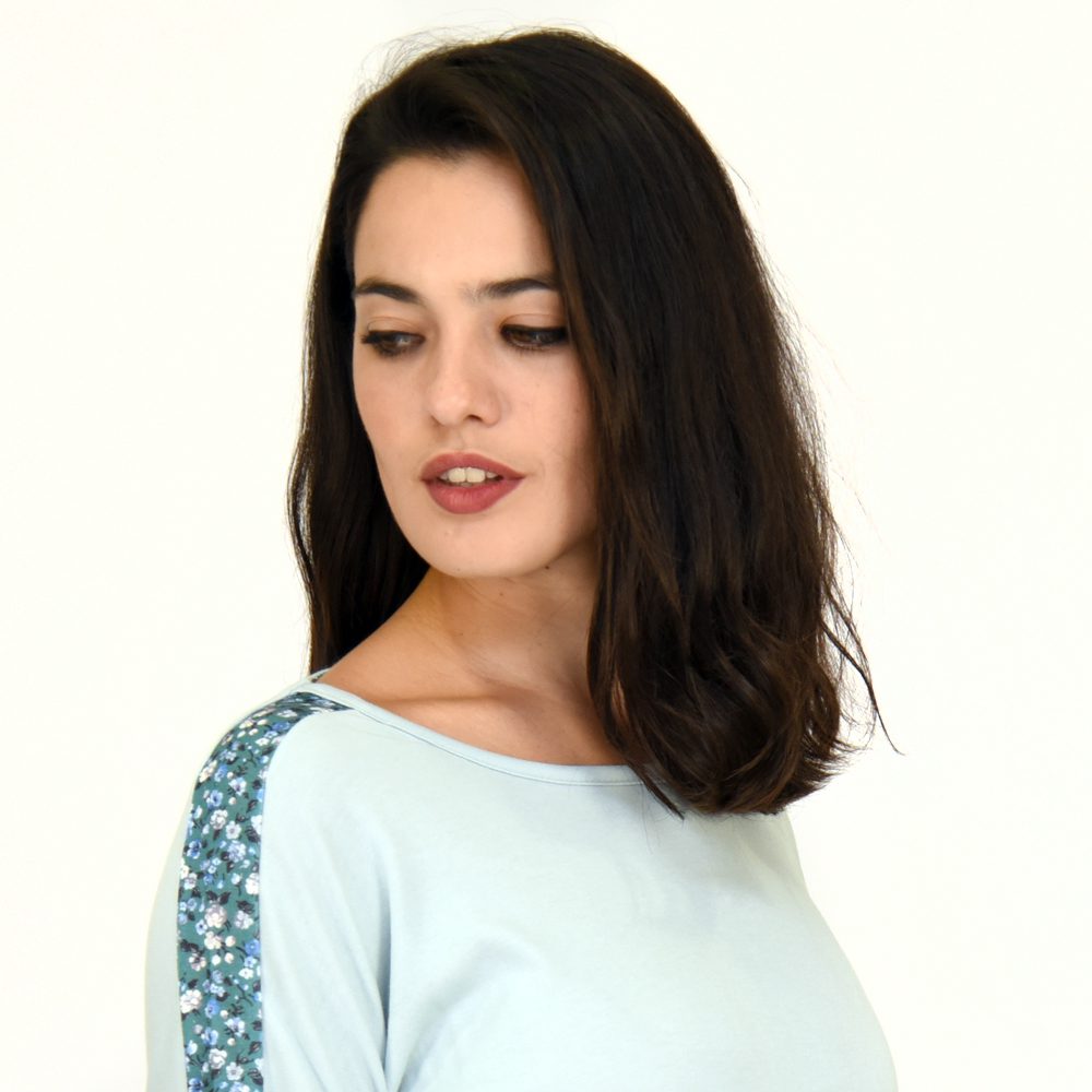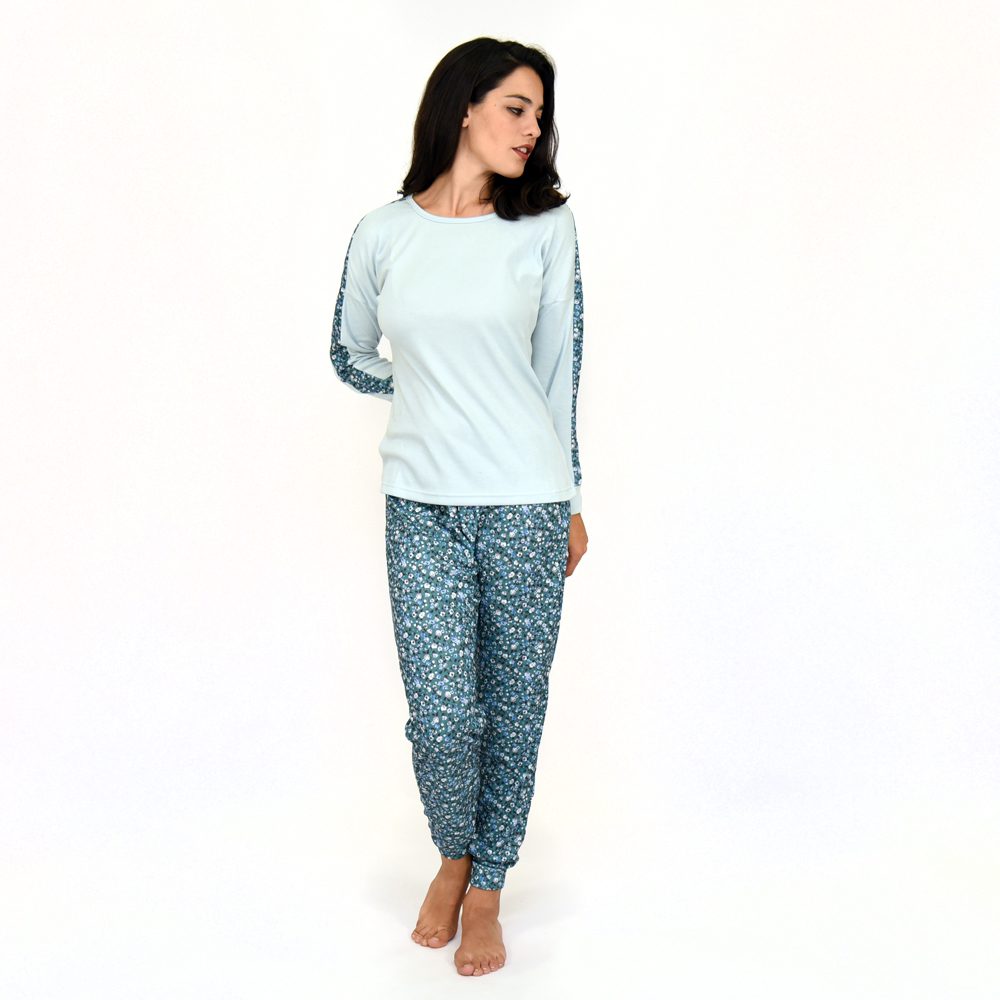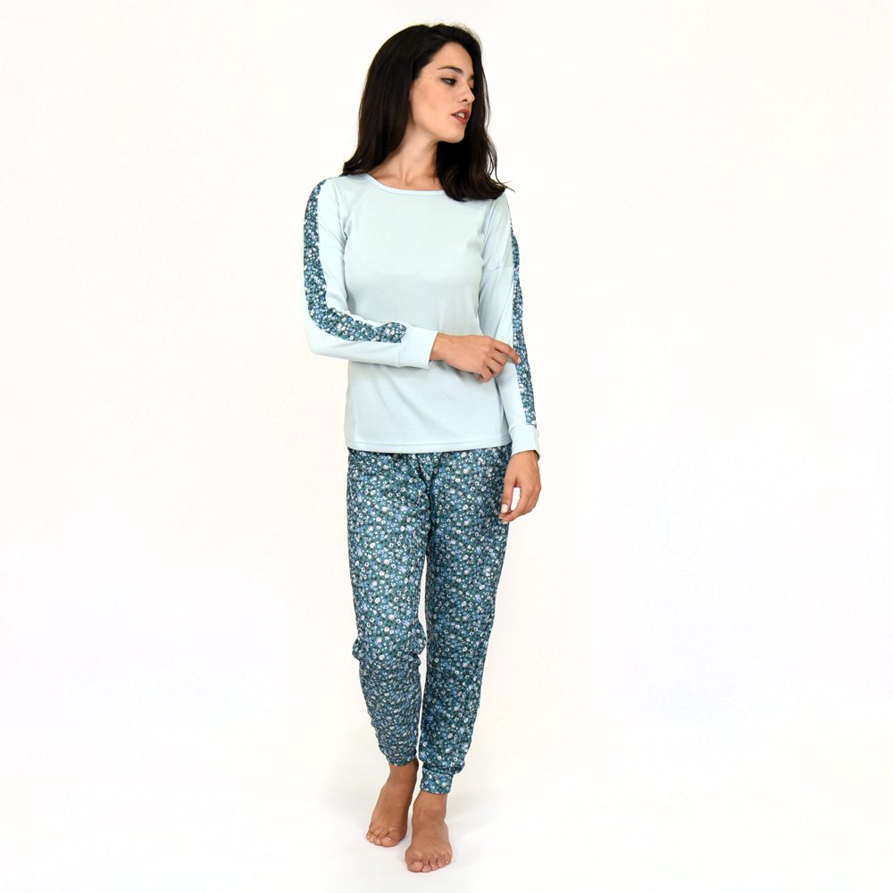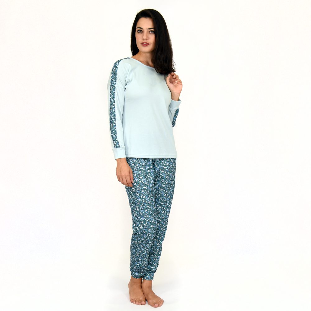 Νεανική πυτζάμα Koyote με floral παντελόνι .Ελληνικής ραφής .Το μανίκι όπως και το παντελόνι έχουν μανσέτα.