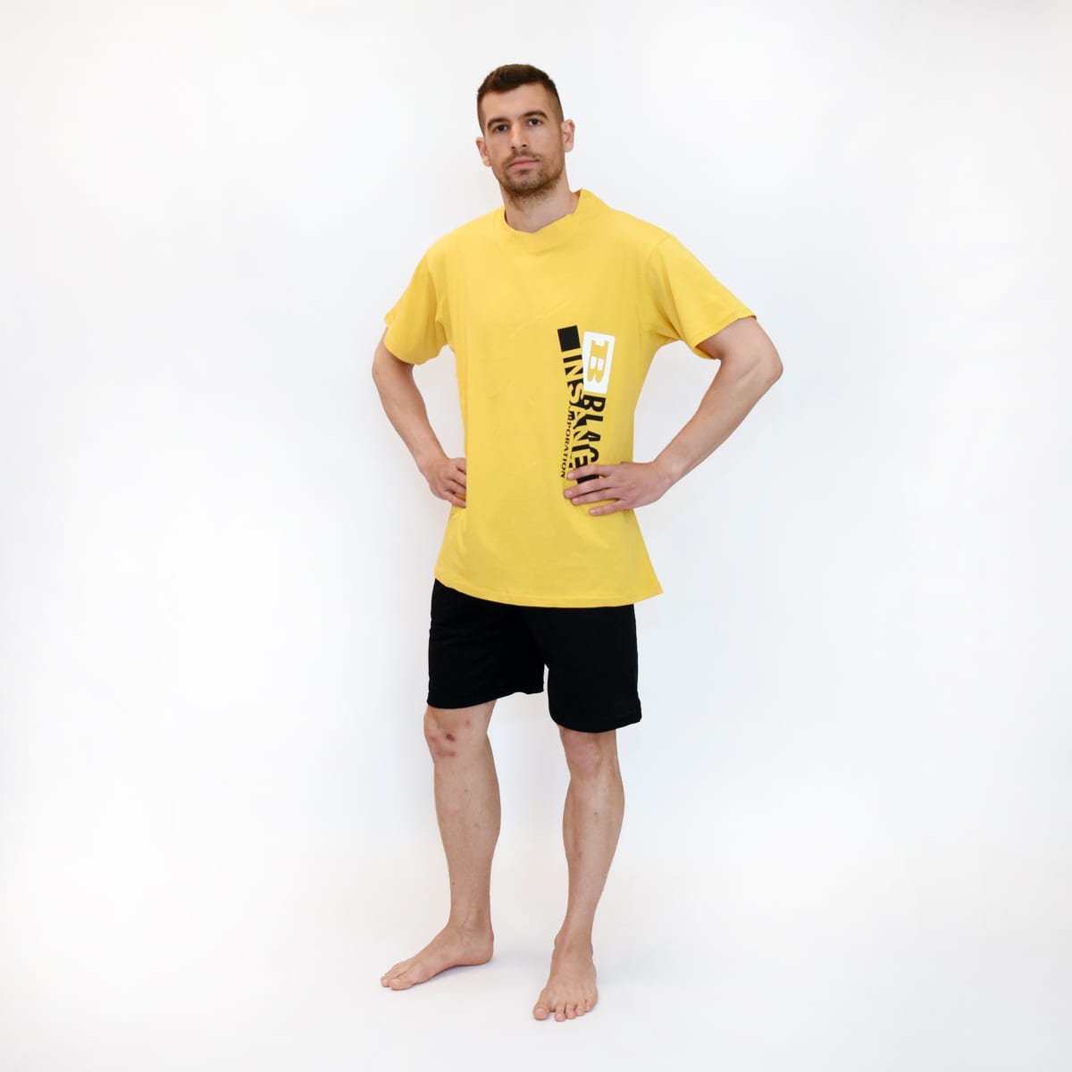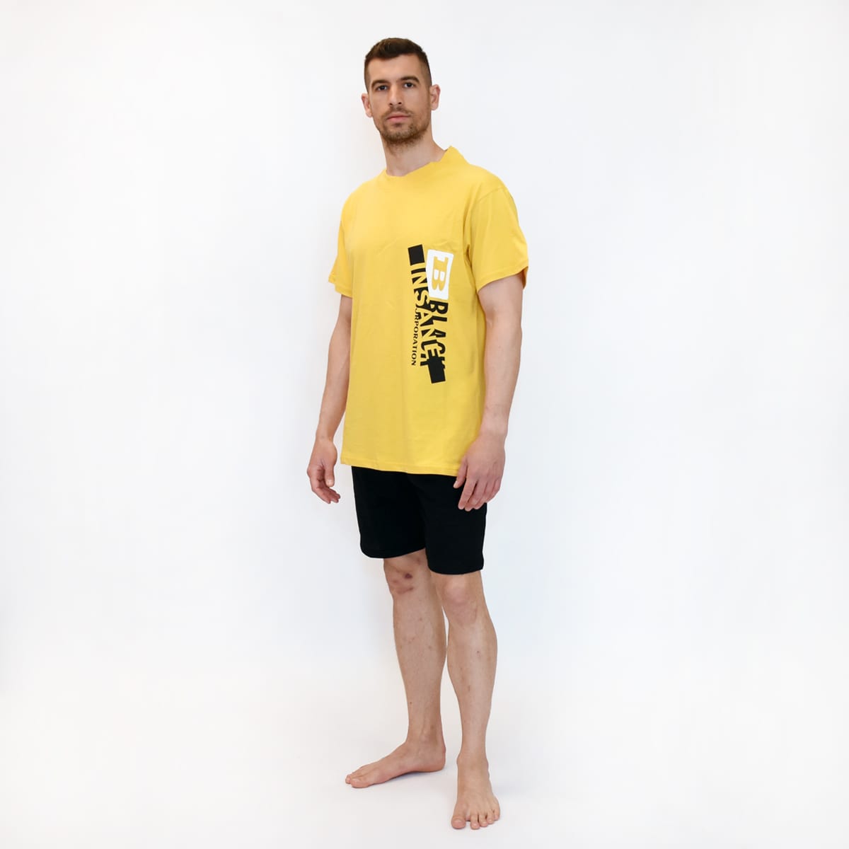 Θα λατρέψετε, όπως κι εμείς, την Ανδρική Καλοκαιρινή Πυτζάμα  με Κοντό Παντελόνι και Τσέπες Το μπλουζάκι με το κοντό παντελόνι δημιουργούν ένα ιδανικό σετ για άνετο, δροσερό ύπνο. Το κίτρινο με εκτύπωση στο αριστερό στήθος μπλουζάκι, σε στυλ Τ-shirt είναι σε φαρδιά γραμμή με κοντά μανίκια και μήκος κάτω από τη μέση. Το μαύρο κοντό παντελόνι , φτάνει λίγο πάνω από το γόνατο, έχει πλαϊνές τσέπες και λάστιχο στη μέση. Όλα αυτά  κάνουν την Ανδρική Καλοκαιρινή Πυτζάμα  με Κοντό Παντελόνι και Τσέπες άνετη, ευκολοφόρετη είτε μαζί είτε χωριστά το κάθε μέρος του σετ.