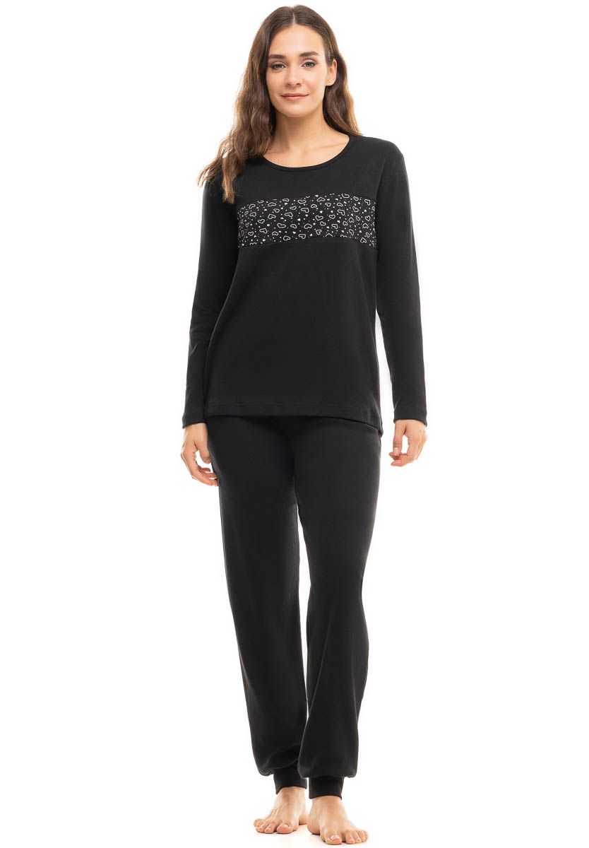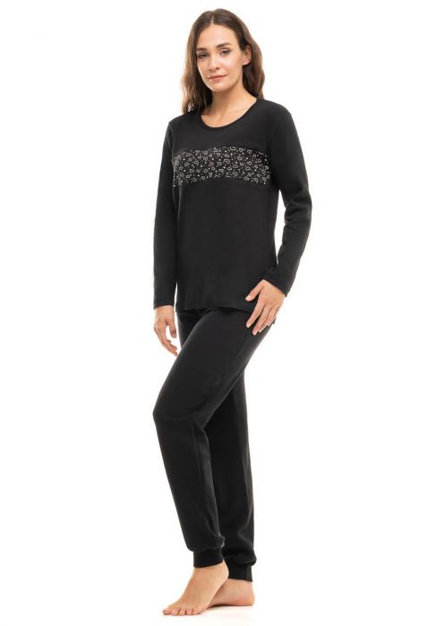 Πυτζάμα Ελληνικής ραφής βαμβακερή σε μαύρο.Πιτζάμα γυναικεία από την Ελληνική εταιρία Cherry Underwear. Μονόχρωμη με σχέδιο στη μπλούζα. Ελαστική και άνετη για έναν ήρεμο ύπνο.