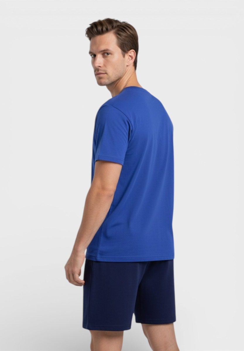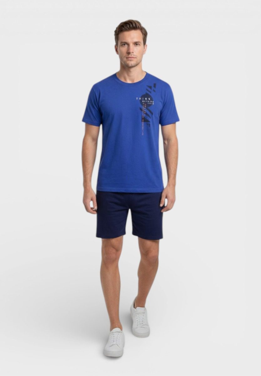 Το σετ αποτελείται από κοντομάνικη μπλούζα με μοντέρνο τύπωμα στο στήθος και άνετο σορτσάκι, δημιουργώντας έναν casual και σύγχρονο συνδυασμό που εξασφαλίζει άνεση και ελευθερία κινήσεων.