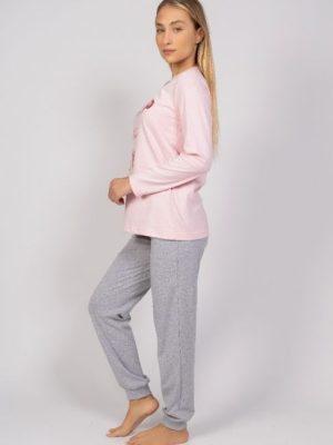 Γυναικεία πυζάμα βαμβακερή σε γκρί αποχρώσεις Ελληνικής ραφής.