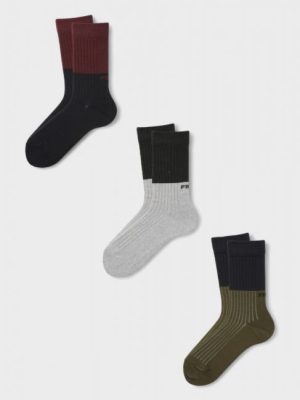 Fila Ανδρικές Κάλτσες 3 Ζευγάρια – Βαμβακερές Αθλητικές Λαδί, Γκρι & Μπλέ