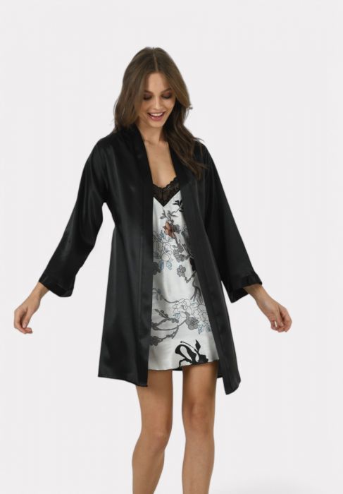 Σετ Ρόμπα – Νυχτικό Satin Moongirl Black & White Passion