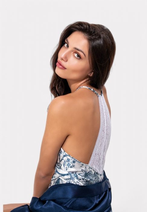 Αναδείξτε τη φινέτσα και τη θηλυκότητά σας με το σατέν σετ ρόμπας & νυχτικού Blue Anemone. Η μπλε ρόμπα με μανίκια 4/4 προσφέρει κομψότητα και άνεση, ενώ το λευκό νυχτικό με τιράντες διακοσμημένο με μοτίβο λουλουδιών και διακριτική δαντέλα στο στήθος χαρίζει μια ρομαντική και εκλεπτυσμένη πινελιά.